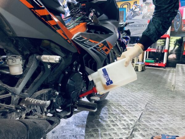 - Một chai E20 (300ml) có thể sử dụng từ 3 – 5 lít dầu nhớt. Cho dung dịch E20 vào động cơ theo tỷ lệ trên chai. Nổ cầm chừng 20 phút. Xả. Thay dầu và lọc dầu mới.