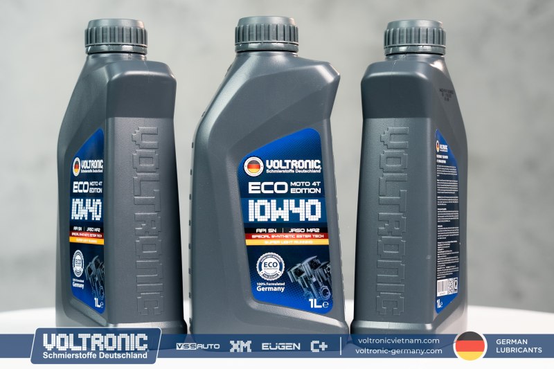 - Phụ gia được nhập khẩu từ Voltronic GmbH: Giúp tăng cường độ bền nhiệt, khả năng chịu tải và chống mài mòn tối ưu cho xe máy vận hành trong điều kiện đô thị nóng ẩm, kẹt xe hoặc tải nặng.