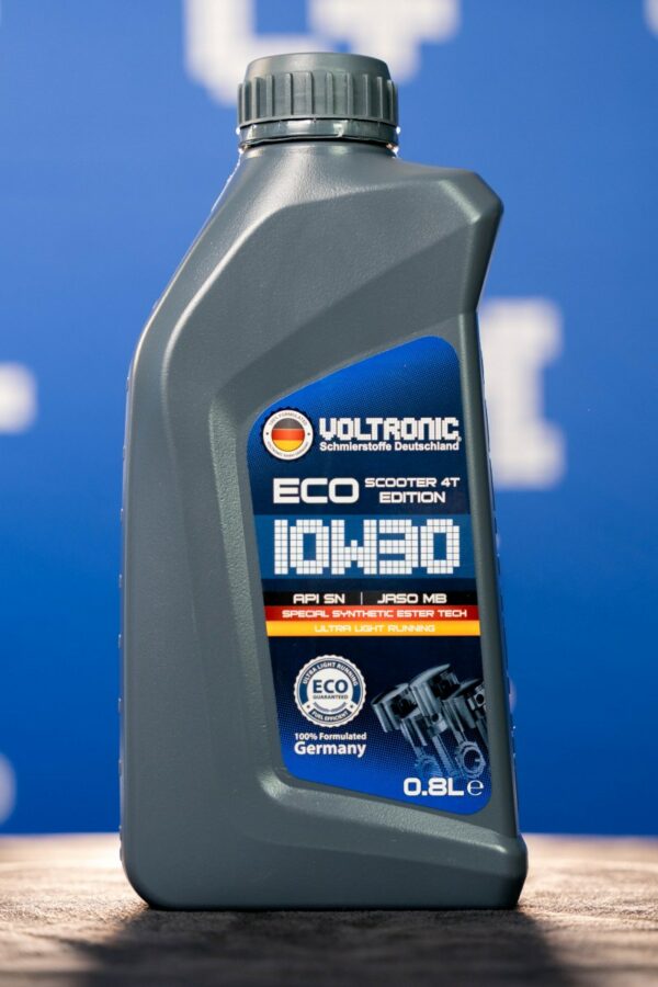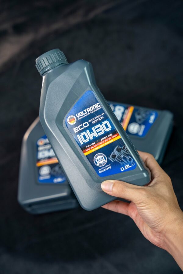 VOLTRONIC ECO SCOOTER 4T EDITION SAE 10W30 là dòng dầu nhớt chất lượng được sản xuất theo tiêu chuẩn châu Âu, ứng dụng công nghệ Special Synthetic Ester – công nghệ độc quyền giúp tăng cường khả năng bôi trơn, giảm ma sát tối đa, giữ động cơ hoạt động êm ái và ổn định trong điều kiện vận hành thường xuyên.