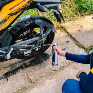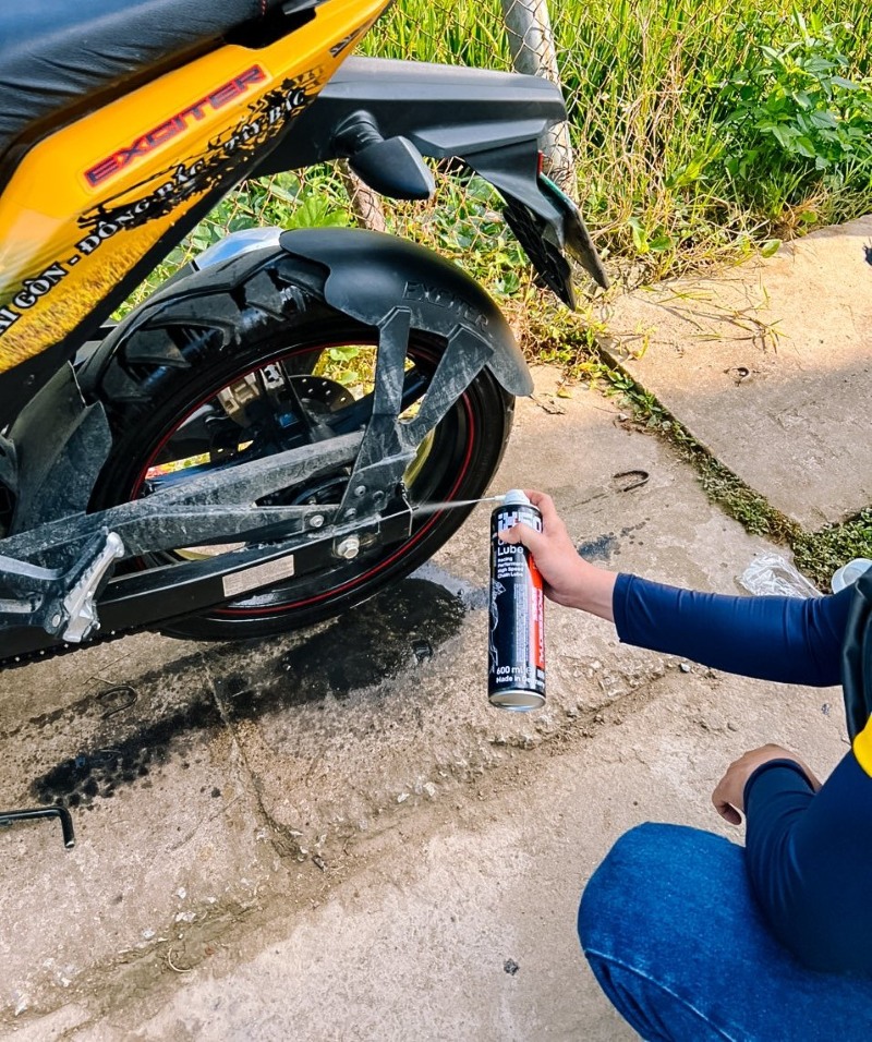 - Xịt đều dung dịch lên các mắc sên xích ở khoảng cách 5 – 10 cm.